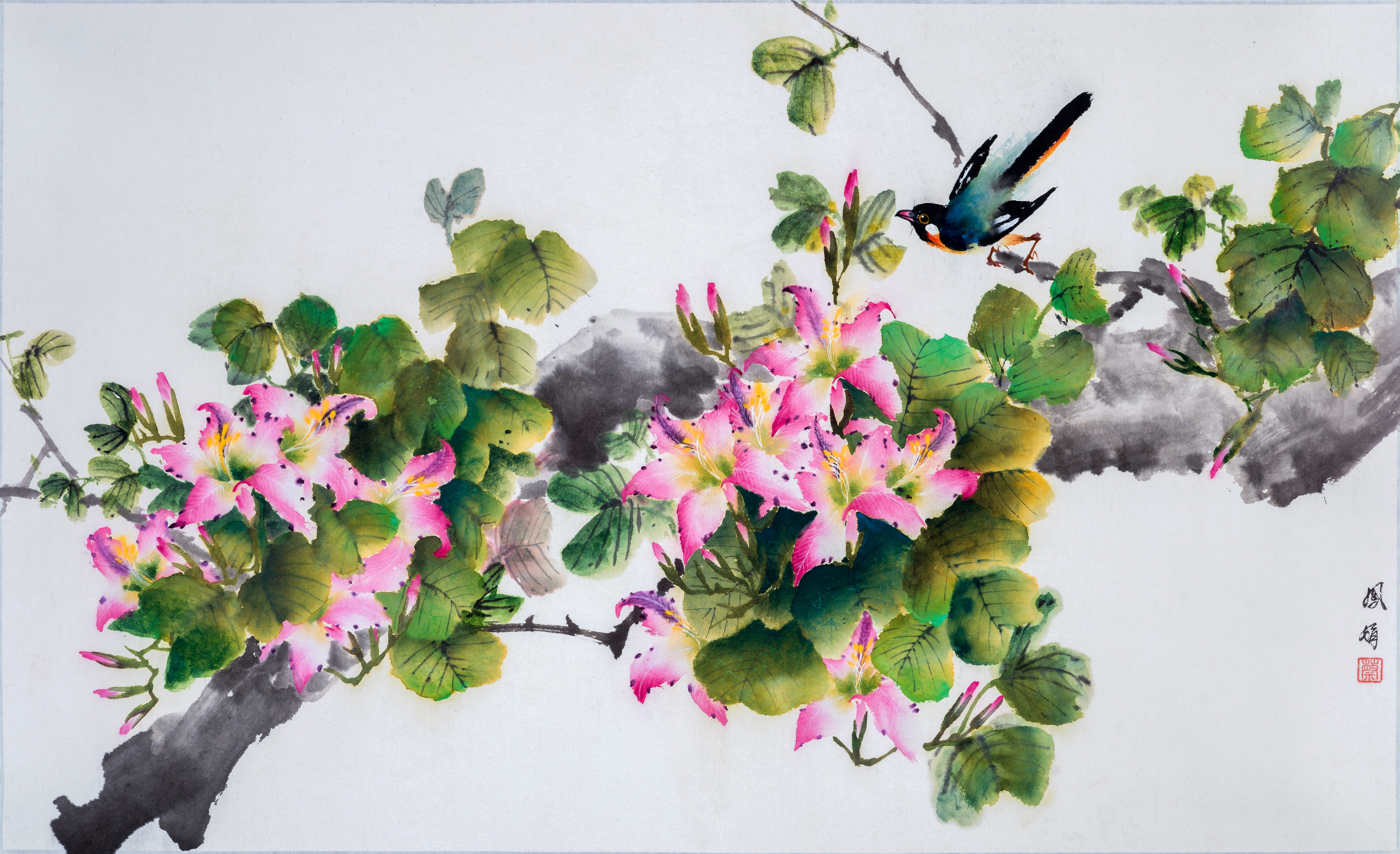 Lingnan Ink Painting combines the techniques of ink painting with the characteristics of traditional literati painting. With light, elegant, and clear brushwork as its distinctive feature, it emphasises a lively artistic conception, a distant mood, and a poetic quality, giving people a sense of tranquility, serenity, and freshness.